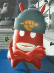 Reggie is a red Raydian and makes his first and only appearance in de Blob 2 in the Comrade Black U/State College level. He has a streetwise personality. It is possible Reggie is also a Colour Underground member as he wears a hat with the Colour Underground logo on it. He can also be seen in the "Single Inkies" commerical doing the Gangnam Style dance.